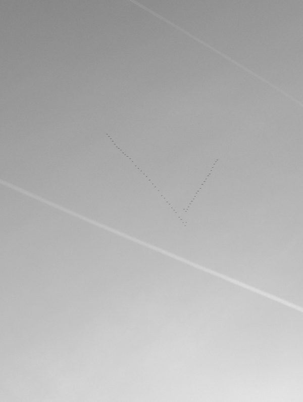 We can still hear their cries long after they are gone. And then, suddenly, the sound swells again and the next group comes flying over the rooftops. They are heading west… I wonder where they’re going.